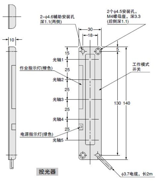 | 電纜延長 | 0.3mm2以上的電纜時,投光器和受光器的全長均可延長至100m | ||||