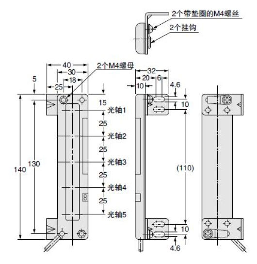 檢測距離0.2~3m (當設定SHORT時為0.05~1m) 光軸間距:25mm 檢測高度:100mm 檢測物體:?35mm以上的不透明體 |