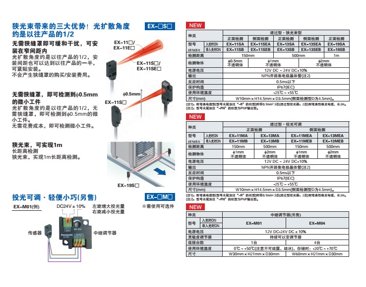 EX-11□ ,EX-11E□ ,EX-15和EX-15E都裝有φ 1mm狹縫透光罩,可檢測φ 1mm以上的物體。因此,適合于精確定位或小部件檢測。 |