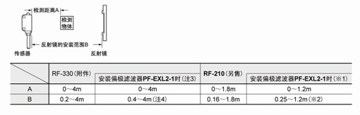 (注1) :裝時請使傳感器與反射鏡之間保持0.16m以上的距離。詳情請參照種類