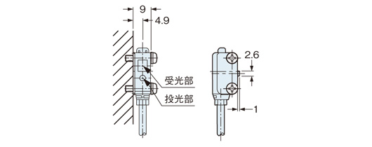 MS-EXL2-1安裝圖(安裝在透過型受光器上時)