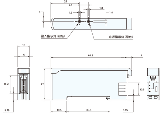 e對應e-CON連接器的模擬電壓輸入單元。 可輸入的模擬電壓范圍:1~5V。 可連接NPN輸出型的機器或者分離型壓力傳感器頭(DPH-100系列)和熱電偶等模擬電壓輸出型的機器。 帶電源指示燈以及輸入指示燈。 連接SC-GU3-0□的情況下,請與連接器單元SC-71組合使用。 連接SC-GU2-C的情況下,請與非線連接器CN-70組合使用。 連接SC-GU1-485的情況下,請與CN-71-C□(子電纜(1芯))/CN-701(省配線連接器)組合使用。 |