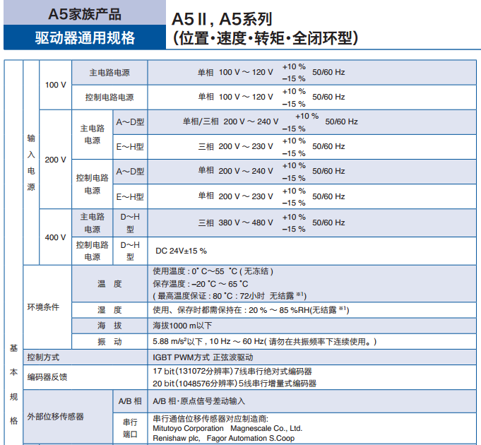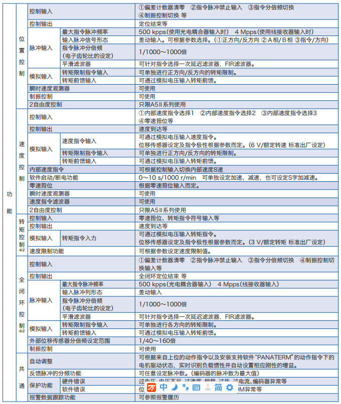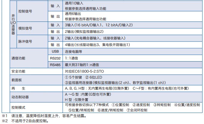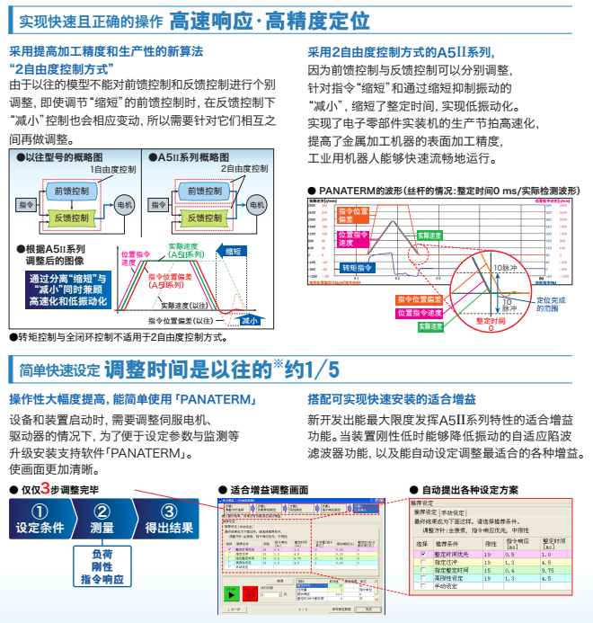 2自由度控制方式;速度,位置,轉矩,全閉環控制全功能型;快速、智能、簡便,高速相應、高精度定位