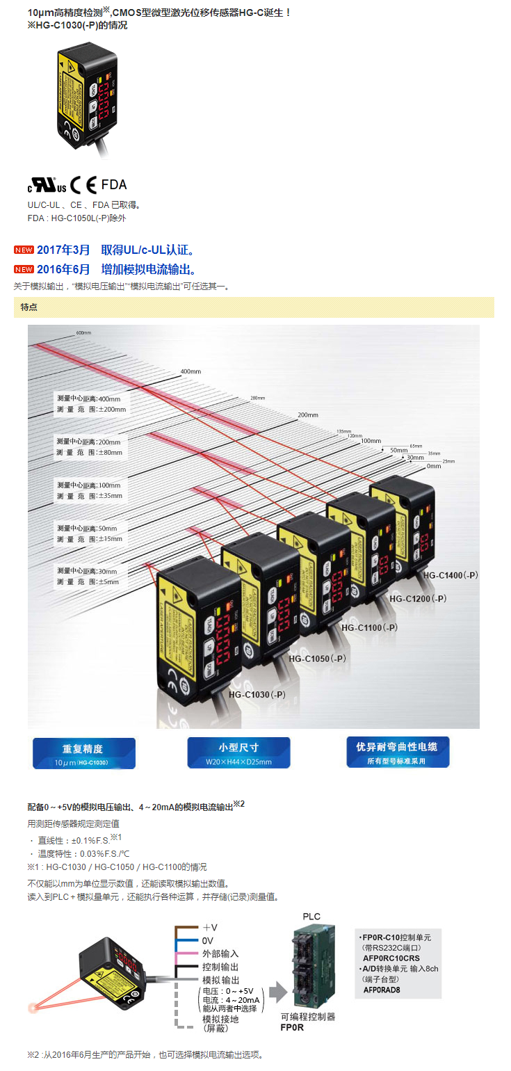 CMOS型微型激光位移傳感器HG-C系列 HG-C1050L(HG-C1050L-P)